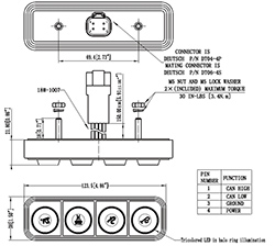 Specifications: Voltage Input: 8 to 32 VDC Serial Communication: CAN J1939/ISO11898 Short Circuit Protection: ISO 16750-2 ESD: ISO 10605 Radiated Immunity: ISO14982 6.6 Conducted Emissions: SAE J1113-41 Broadband Radiated Emissions: ISO14982 6.4 Operating Temperature: -40~+85℃ (-40~+185°F) Thermal Shock: IEC 60068-2-14 Solar Radiation: IEC 60068-2-5 Ingress Protection: IP67 Humidity: IEC 60068-2-78; IEC 60068-2-30 Salt Fog: IEC 60068-52 Chemical resistance: ISO 16750-5 Vibration: IEC 60068-2-6 Mechanical Shock: IEC 60068-2-27 |