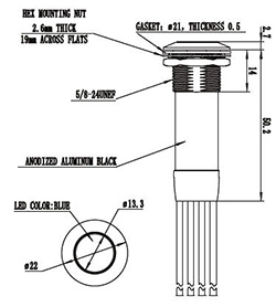 Specifications: Housing Material: Anodized aluminum Button Material: Thermoplastic Contact Resistance: <50mW (Initial) Dielectric Strength: 1000V for 1 minute Operating Force: ~4 lbs (18N) or 2.5 lbs (11N) OperatingTemperature: -55~+85oC (-67 ~185oF) Mechanical Life: 1 million (operatings) Electrical Life Resistive load 10A 100,000 (operations) (@28VDC or 115VAC): Resistive load 15A 25,000 (operations) Inductive load 5A 100,000 (operations) Lamp load 3A 100,000 (operations) Degree of Protection: IP68 |
